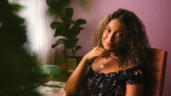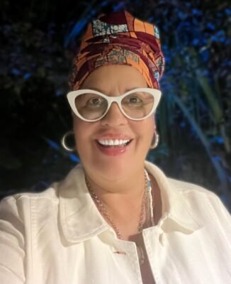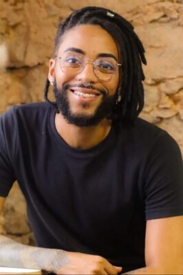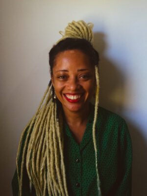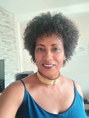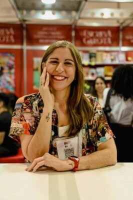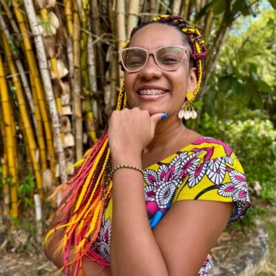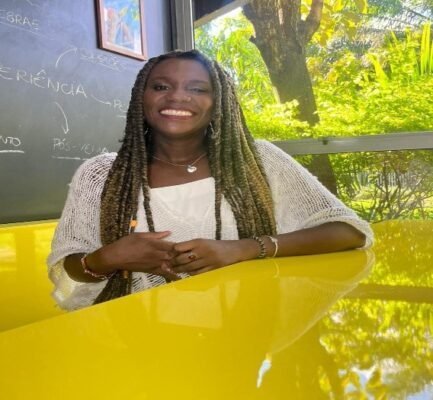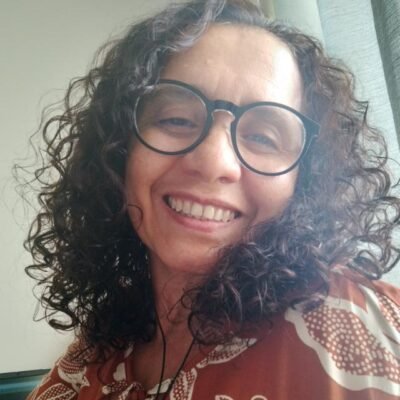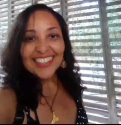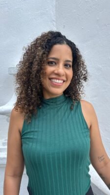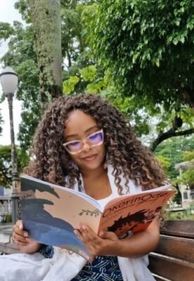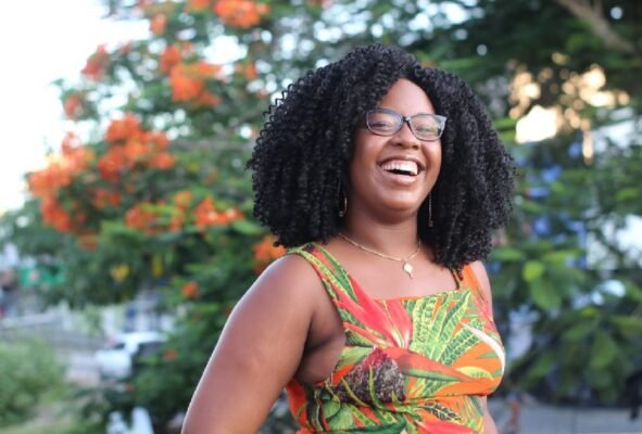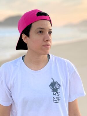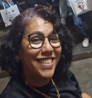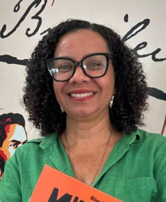 Mulher negra, baiana, nascida e criada nas águas doces e salobras do Recôncavo. Professora da rede pública de ensino, doutora em Literatura e Cultura pela Universidade Federal da Bahia (UFBA), desenvolve pesquisas sobre literatura negro-brasileira e escrita de mulheres negras. Poeta e autora de “Na Beira” (Ed. Segundo Selo, 2025).
